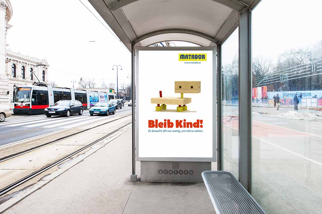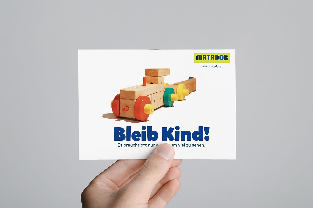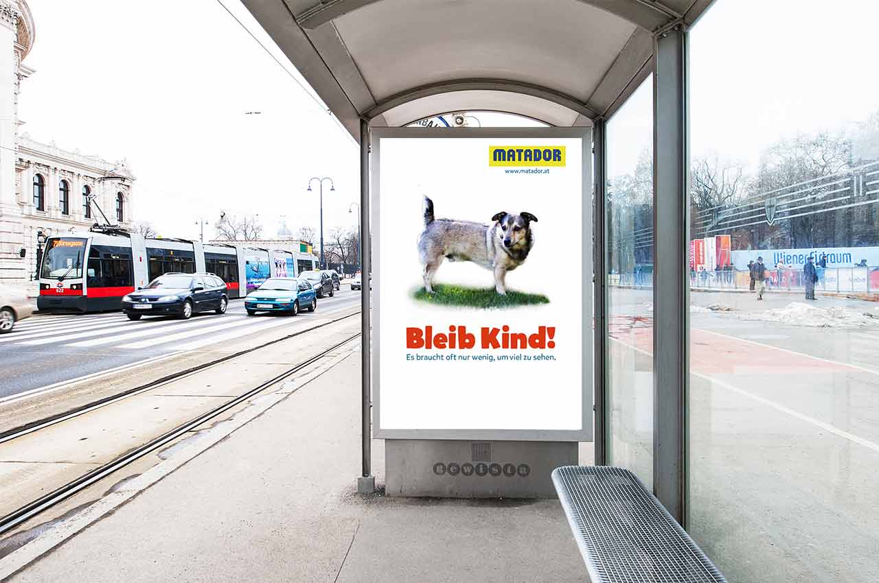 Ziel war eine Überarbeitung des öffentlichen Auftritts der Firma Matador. Die daraus entwickelte Plakatkampagne animiert Erwachsene den Blickwinkel eines Kindes einzunehmen. Eine Kippkarte, die als Direct Mail verschickt wird, und eine Anzeige mit interaktiver Klappfunktion sowie ein Video für z.B. Facebookdienen als Werbemaßnahme.