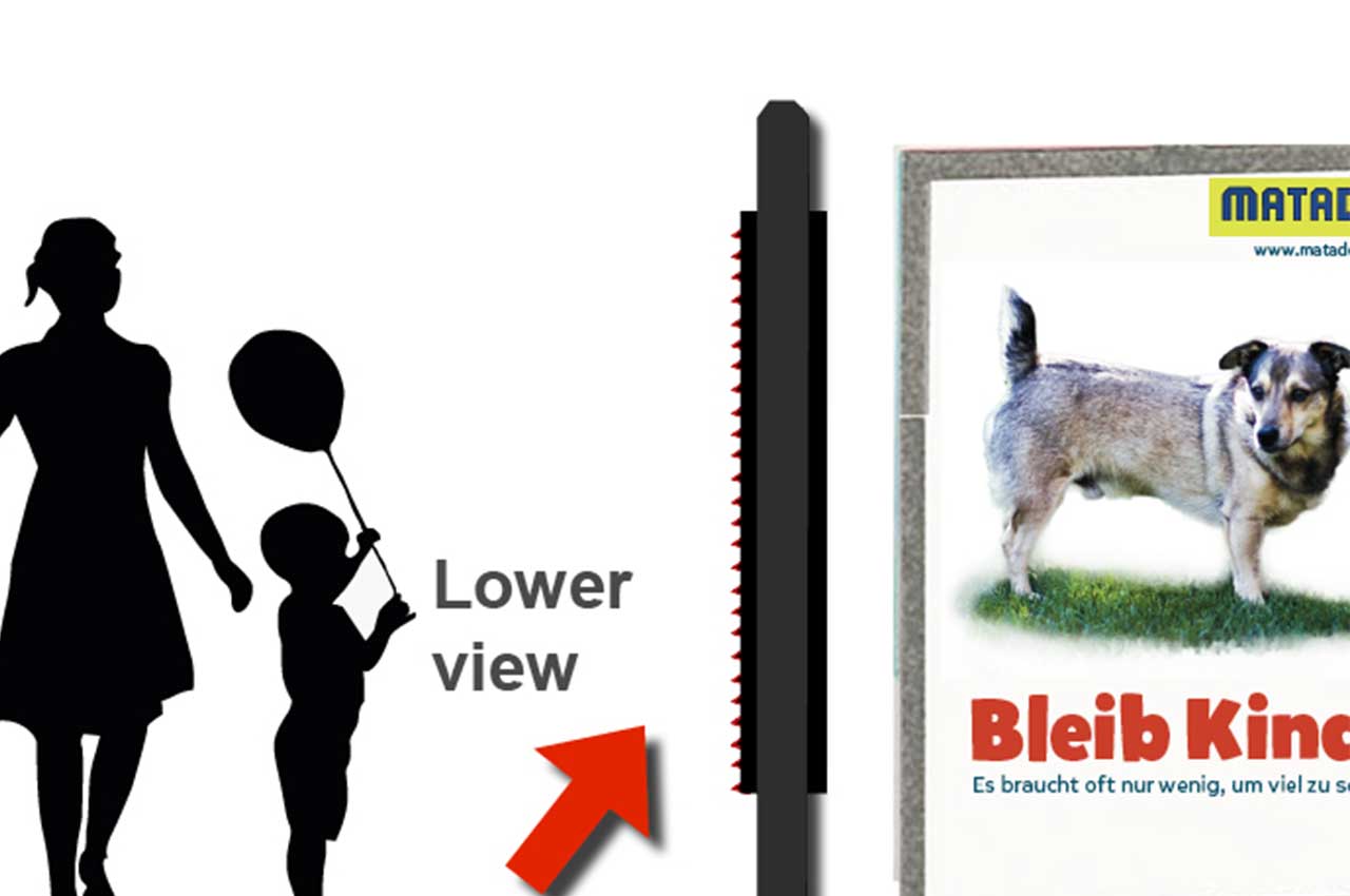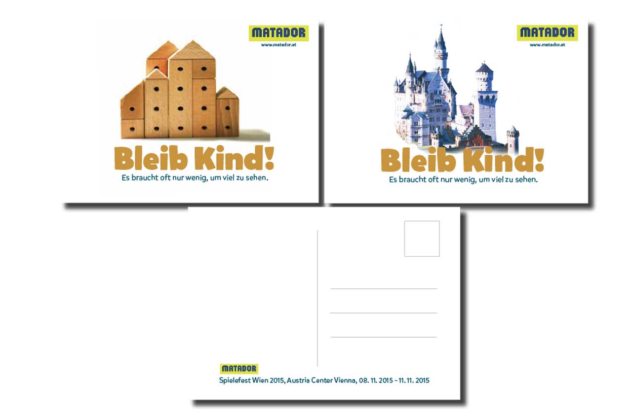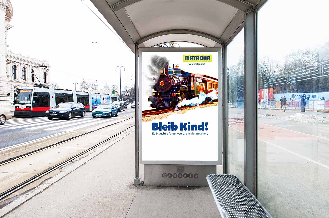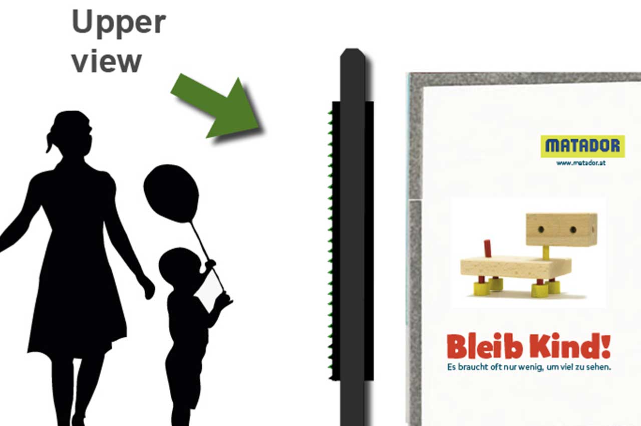 Ziel war eine Überarbeitung des öffentlichen Auftritts der Firma Matador. Die daraus entwickelte Plakatkampagne animiert Erwachsene den Blickwinkel eines Kindes einzunehmen. Eine Kippkarte, die als Direct Mail verschickt wird, und eine Anzeige mit interaktiver Klappfunktion sowie ein Video für z.B. Facebookdienen als Werbemaßnahme.